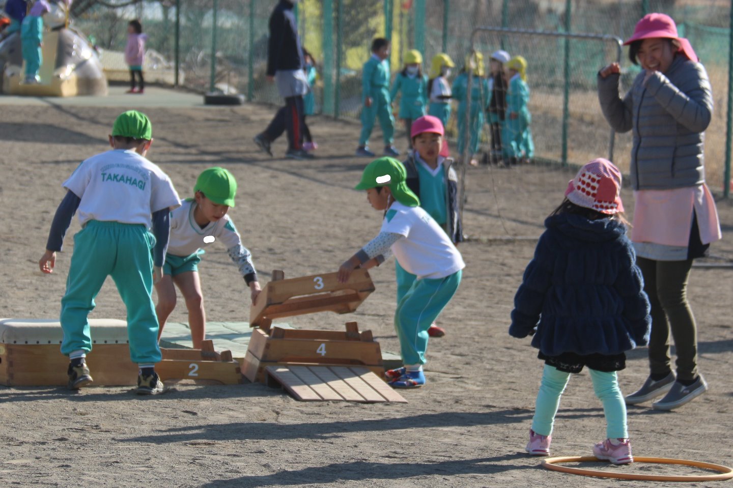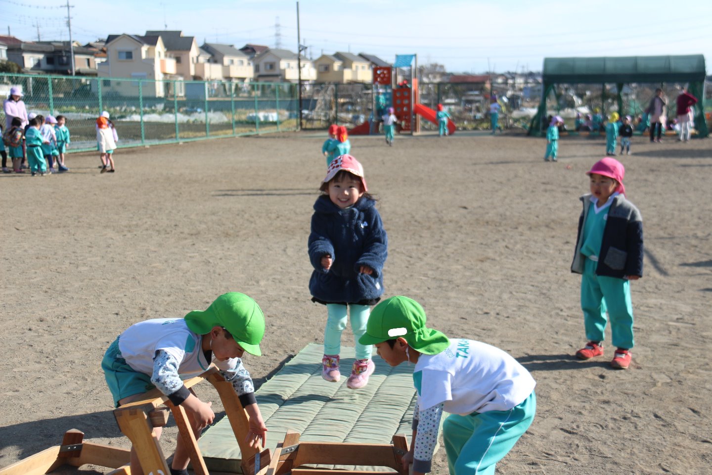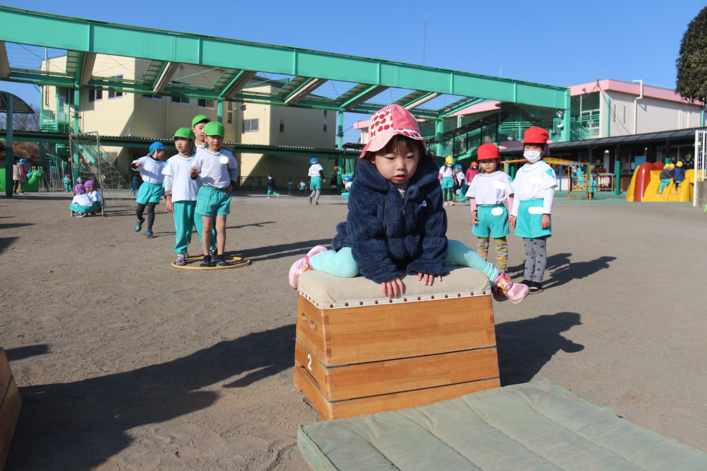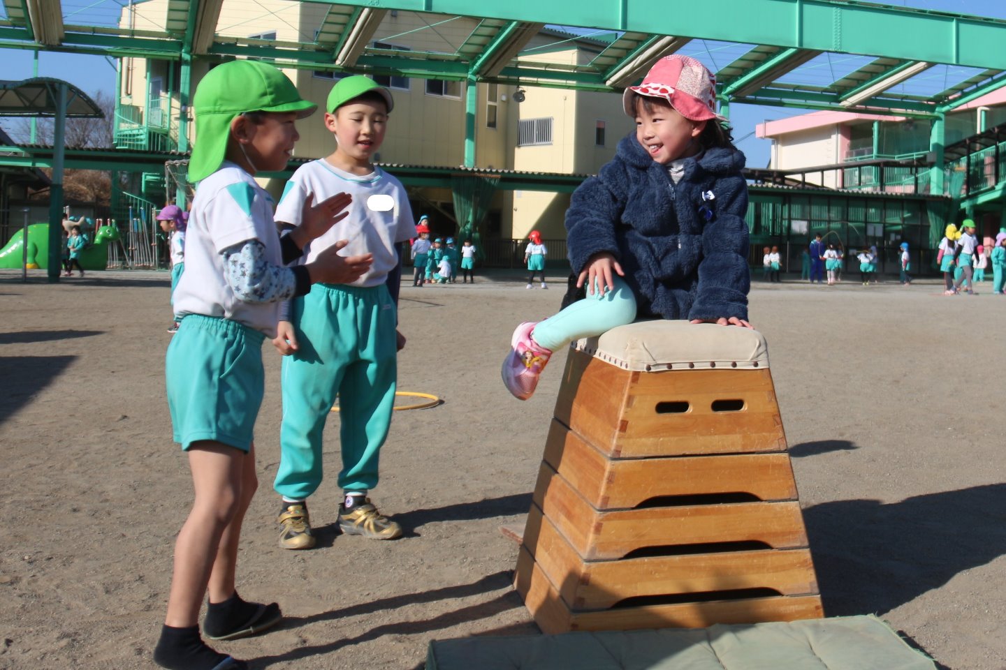 小さいお友達が1人で出来るようにと跳び箱の高さを5段から3段に変えてくれたのです。保育者はお兄さん達に任せ「ありがとう!!」