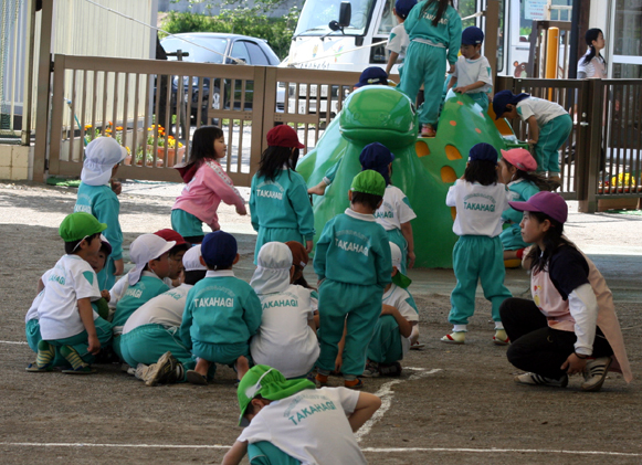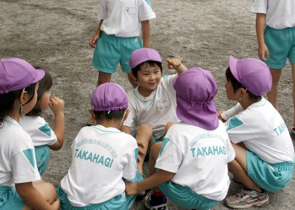 課題に気がついた子が「みんな、ちょっと集まって~」と仲間を集めて話し合う・・・。遊びのルールづくりや、ルールやメンバーの変更、もっと楽しく遊ぶアイデアなど・・・。