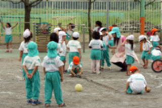 保育者が教えるのではなく、子どもたちが話し合いで解決する。自立・自律する子を目指して・・・。楽しそうに丸十鬼がはじまりました。