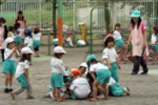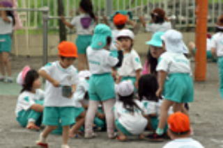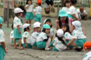 子どもたちが、ルールを破ったが気づかない時や解決しようとしない場合などは、保育者が集団保育の特性を生かして、「みんな聴いてー」などと、子どもを集め、子どもが課題に気づき、考える言葉をかけ、話し合いで解決するよう支援します。