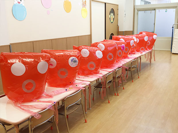 • タコさん作りの様子です。シールをはって顔をかいて・・・