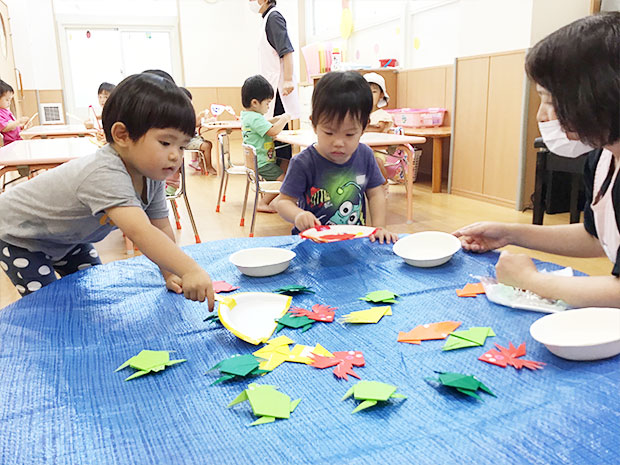 • こちらでは、ポイを作ってお魚すくいに挑戦!何匹とれたかな!?
